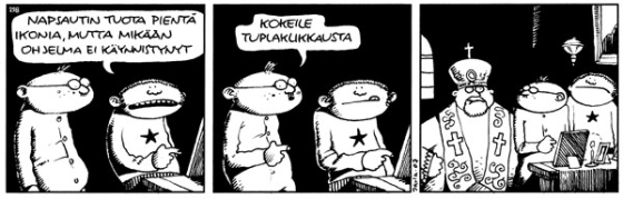 jptcool kirjoitti: Ainoa konkreettinen este on, ettei se mahdu ortodoksisen kirkon ovista. Kävin mittaamassa. Kyllä mahtuu, kallistuskulman pitää olla oikea ja vauhdin sopiva. Tsasounaan ei välttämättä mahdu edes sisälle. tarkoititko sitä? jptcool kirjoitti: Löytyykö Venäjältä vielä edullisia ikonimaalareita, DSuperini kaipaa uutta maalia? Ei välttämättä, eikä ehkä tarvitsekaan. Itsekin olen Karjalan myöhäisevakoita, kaikissa maalauksissa toistuu katkeruus menetetystä kotiseudusta.