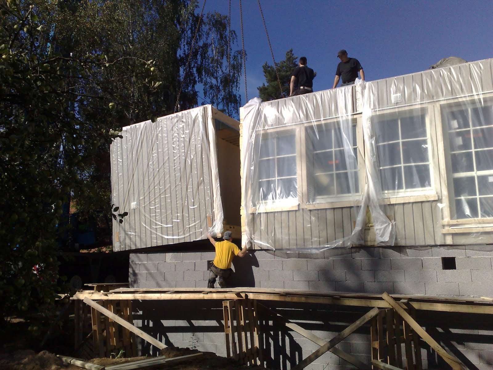 Säxä77 kirjoitti: Kokonaisia taloja on huono tehdä valmiiksi kun tulee kuljetusongelmia, mutta voisiko tehdä valmiita huoneita joita kasattaisiin tarpeellinen määrä sokkelin päälle? Kylppärikin voitaisi valaa saumattomaksi laatikoksi jostain täysin vesitiiviistä materiaalista. Johan noita on ollut maailman sivu, meilläkin asustellaan Älvsby talossa. Valmiita sisätiloissa rakennettuja palikoita vaan jonoon perustuksen päälle https://4.bp.blogspot.com/_FTwyU2QmdXE/ ... 101301.jpgJa vimosena ns. märkäpää, yksi mokkula jossa on kaikki märkätilat, sauna, suihku, kodinhoito ja talotekniikka IV-koneineen ja lämmönvaraajineen samassa modulissa, pintoja ja vesikalusteita myöten valmiina jo tehtaalta lähteissään https://2.bp.blogspot.com/_FTwyU2QmdXE/ ... 101325.jpgVielä katto palikkajonon päälle ja sisääntulokuisti ulko-oven eteen, nekin valmiista palikoista https://1.bp.blogspot.com/_FTwyU2QmdXE/ ... 101414.jpg