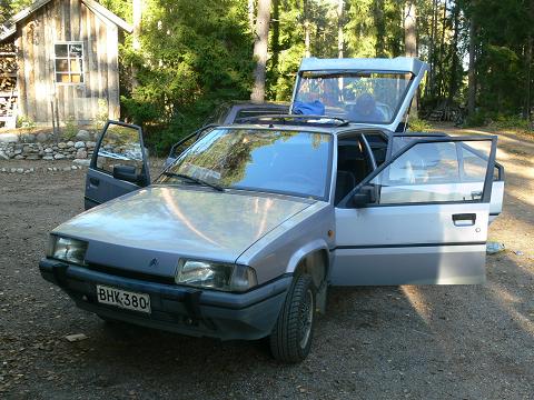 La 7.4. eli eilen tiellä nro 6 Koskenkylän kohdalla Itä-Uudellamaalla näin ikimuistoisen näyn.. Vaaleanpunainen BX farmari, jossa kattotelineellä samalla vaalenapunaisella väritetyt anopinarkku ja potkukelkka!! Kerrassaan humoristinen combo!