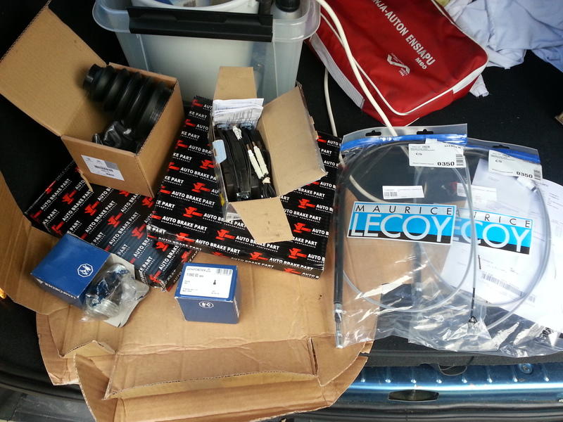 Eipä tässä ole tullut mitään hienoa hankittua... Xsaran 120 tkm huolto, jarrujen päivitys, raidetangon nuppi, alapallonivel ja pyörien suuntaus, päästömittaus, katsastus, liikennevakuutus, kaskovakuutus ja autovero (todellakin kaikki yhtä aikaa). Näin pienituloisena, (työssä käyvänä) vaati vaan duunarin liksalla töitä JÄRJETTÖMÄN monta päivää... No, kai se autoilu on kaiken sen arvoista  Mitään näkyvää ei kyllä saanut, vaikka lähes 2000€ sijoitti!!...