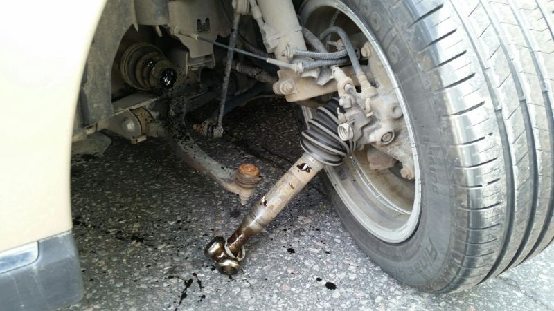 Näin kävi. Itse en ollut liikkeellä onneksi sattui parkkis pyörityksessä. Alapallo vaihdettu 2014 katsastukseen ja kilometrejä tälle välille mahtuu n.15tkm. Kesärenkaiden vaihdon yhteydessä huhtikuussa tarkistin välykset työkalun kanssa. Olisikohan kierre korkannut? :evil: :evil: :evil:
