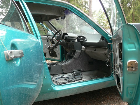 Ainoa varsinainen harmitus on nokka-akselin päähän tehty boorinkorjaus mig-liimalla mutta aina ei hätä lue lakia. Niin ja alkuperäiset oviverhoilut ovat hukan jäljillä, kaikki muu koriremonttia varten sisältä ja päältä purettu löytyi mökiltä. Uuden maalipinnan väri ja laatu pistää miettimään, laitetaanko maalaus vielä uusiksi ennen sisustan asennusta?