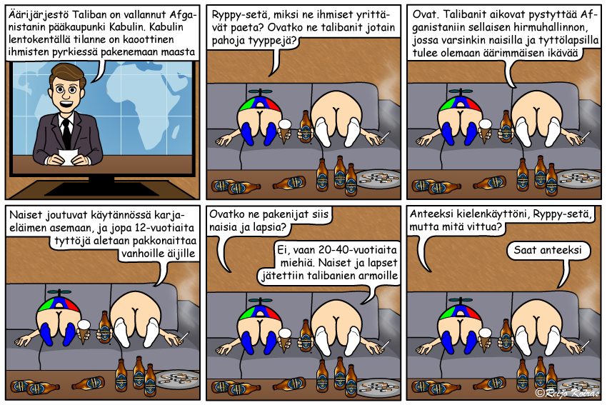 Xari kirjoitti: Mustis kirjoitti: Vauhdilla mennään metsään kun luodaan lapsille ja nuorille mielikuvaa että Suomalaiset raiskaavat ja perseilevät maalla merellä ja ilmassa, ei ikinä ulkomaalaiset. Ulkomaalaisten kanssa on vain "ihanaa yhdessä oloa, ruuanlaitto hetkiä ja ihanaa monikulttuurista värinää" Laivalastillinen lukiolaisia taisi just vaihtaa Ohisalon Purraan. Miksiköhän ?