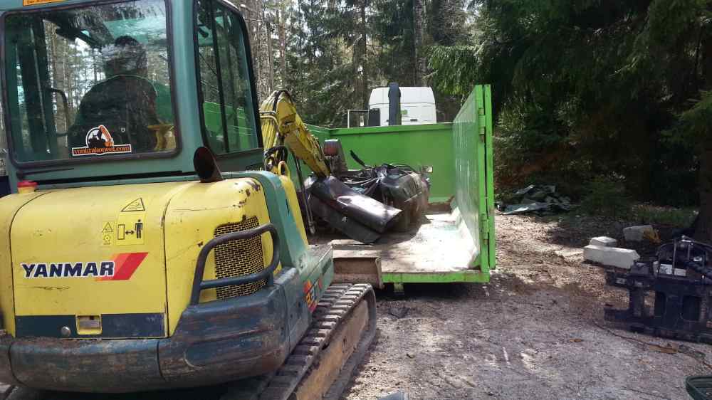 Pari kuvaa otin muistoksi minäkin, liituCx kaivurin syleilyssä ja "paketissa" lavalla viimeisellä matkallaan.