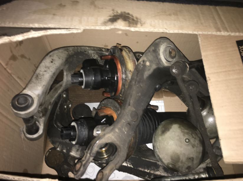 Tuossa kolmen-neljän tuhannen jevron (vaihtotöineen) perussetti jonka C6:teen saa vaihtaa joka maitokauppareissun jälkeen (heh heh, ei nyt niin usein aivan, mutta USEIN), eli koko etutuenta jousitolppineen. Taas kerran kävin setin vaihdattamassa, Vehollapa tietenkin. Kallistuksenvaimennin ei sopinut peräkonttiin ja siten kuvaankaan mukaan. Mikä tahansa välys/pikkuvika kuvassa olevissa osissa saa aikaan epämääräistä kolinaa/meluisuutta/jäykkyyttä/hatutusta.