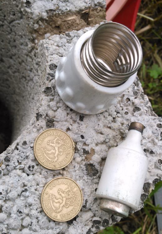 r_a_n_u osui oikeaan, olin kaveria jeesaamassa sähköhommissa ja tämmöisiä tuli vastaan. Aitoa Kekkosen aikaista kekseliäisyyttä  Ei ihan Lepikon torpan sähkökeskuksesta mutta läheltä, saman pitäjän alueelta.