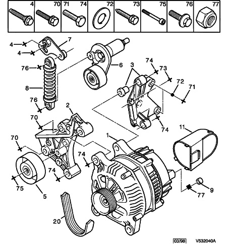 Juu ei tuota erillisellä jousella olevaa kiristintä ole kuin V6 ja 2,1 TD-malleissa. Pienempikoneisissa automaattikiristimet ovat eritavalla toteutettu, jousi on kiristimen runkon sisällä.