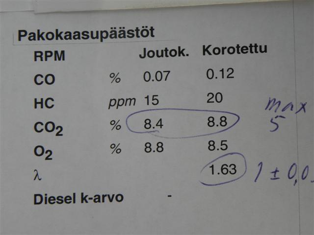 Eikös tuossa ole ympyröity väärä arvo (hiilidioksidi). Hapella on max arvo. Ilmapumpullinen olisi saattanut mennä läpi