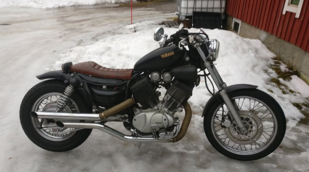Vielä on korkkaamatta, mutta valmistautuminen on käynnissä  Virago tuli otettua työn alle ja muotoiltua takapäätä uusiksi, runko sai maistaa laikkaa jotta sain matalamman takalokasuojan ja cafe-racer-tyylisen penkin. Kyllä sillä noinkin tarpeen vaatiessä kaksi päällä varmaan pääsee... Öljyt pitäisi vielä vaihtaa ja alkais olemaan valmista tien päälle. Vakuutuskin tuli vaihdettua satasia halvempaan  Muilla yhtiöillä ympärivuotinen oli n 530-650 euroa, mutta OP:lta sai 250 eurolla
