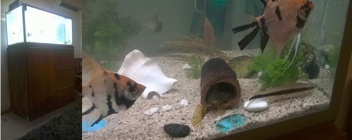 Mun kämpässä lattia huutaa armoa jo tosta 200 litra saavista ja kun lipastokin painaa 250 kg  Joo on valtava ulkoinen suodatin ja ilmastin ja tänään haetaan lisää kasveja sillä nyt on pienet rehut. Eri kemikaalien kanssa oli kyllä pähkäilyä hetken mutta aikas äkkiä ne älyää... Hyvin oon monnit miehittäneet ontot tukit ja kivien aluset. Edelinen omistaja sanoi että suodattimessakin oli aikanaan poikasia