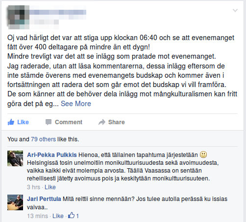 On se kumma, kun joku tuo julki sen, mikä on suurimmalla osassa kansalaisten mielestä oikein, niin pidetään pahana. Ei täällä todellakaan tarvita noita ylimielisiä jolppeja vetelehtimään ja häiritsemään muita ihmisiä Jos joku tulee töihin, niin se sopii,ei elätiksi. Missä muuten on määrätty, että monikulttuurisuus on ainoa oikea? Maassa maan tavalla.