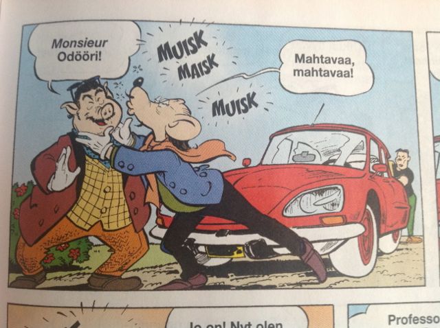Lemon kirjoitti: Uudessa Aku Ankassa  Monsieur Odööri tulee punaisella vinosilmällä Lemuzzarella-juuston maisteluun. Tämä on kyllä lehti eikä kirja, niin et offtopikiksi meni taas  On se toinenkin auto tunnistettavissa.