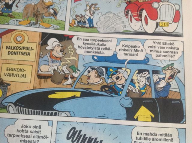 Tiedoston kommentti: Poliisiauto sarjakuvassa Pahan vainu, Aku Ankka 14/2013.