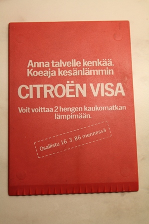 Talven varalle etsin lumiharjaa tallista. Ei löytynyt. Vaan tällainen sen sijaan löytyi. Se on ilmeisesti tullut postin mukana v.-86 koska siinä on ihan selvä osoitetarra kyljessä