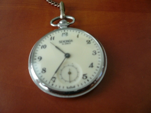 Tuollaisen sain perintönä vajaa pari vuotta sitten. Takakannessa päivämäärä 20.4.1941, jolloin isäni sai tämän 15 vuotiaana rippilahjaksi. Ja sama kello oli puvun taskussa tänä kesänä, kun oma poikani pääsi ripille. Ja ehkä joskus tulevaisuudessa... Valmistaja on geneveläinen Record, joka oli ilmeisesti jossain vaiheessa Longinesin halpismerkki. Käy edelleen varsin tarkasti 71 vuoden iästä huolimatta.