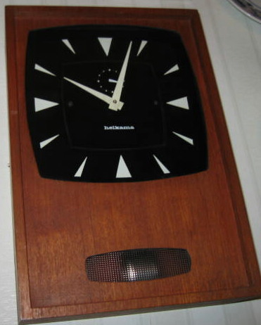 Entä tällainen seinäkello. Suomalainen patentti. Yksinkertainen koneisto ja 1 germanium-transistori. On ollut käytössä v:sta -67, alkuperäinen paristo kesti 16v. Sitten muutama vuosi kaapissa, taas jo >10v seinällä, vasta toinen paristo, jonka parasta ennen-päiväys oli 2003. Sekuntiosoittimen olen itse tehnyt. Kello käy melko tarkasti.