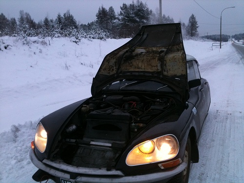 Erilaisten logistiikkaongelmien jälkeen päätin ajaa Ralli-Iidun Juusofin mökiltä kotiin ihan itse. Onneksi! Kokematon kuski olisi voinut säikähtää tästä: