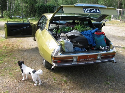 Äsämmä on osoittautunut tilavaksi perheautoksi. Pakkasinhan lähtiessä mukaan taloudenhoitajan, koiran, sirkkelinterän ja perämoottorin. Lisäksi vaatteet ja muut tarvikkeet kahdelle kaksijalkaiselle ja yhdelle nelijalkaiselle arviolta noin viikon matkaa varten. Saas nähdä mahtuuko kaikki hillat kyytiin vai pitääkö ostaa kattotelineet ja suksiboxi.