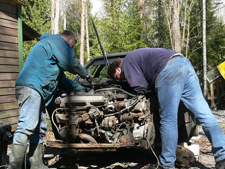 Riisutaan kolme turboa romulaariin sopivaksi. Talkoopalkkana osia kahvipaketeilla, lihasoppaa, kahvia, sämpylää. Pitkänmatkalaiset voivat tulla jo la, jolloin lämmitetään sauna.