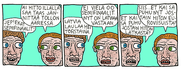 Menipäs hyvin arvaus oikeaan, kakkonen ja kolmonenkin melkein oikein, olivat vain vaihtaneet paikkaa. Dsharrastelija: voin vastavuoroisesti tarjota sinulle kahvit, veikkasithan itsekin voittajan oikein Cikatti kirjoitti: Mä en ole koskaan tuntenut ketään hlökohtaisesti joka on myöntänyt vahtaavansa tosissaan viisuja. Löysin nyt yhden tutun FB:n kautta pari päivää sitten koska hän kirjoitti seuratessaan viisuja että: "miten näistä nyt näin koomiset tuli" ...öööh, veikkaan että se oli vain käänne parempaa jos olivat vain koomiset sillä viisut ovat aina olleet liki freak show ja musiikki on aina ollut järkyttävää. Viisujahan kuuluukin katsella pilke silmäkulmassa, vähän samaan tyyliin kuin elokuvaa "Joulupukki valloittaa Marsin". Kalkkunan pitää lentää ja kotkottaa! UMK on vähän latistanut Suomen karsintoja, Ninjan tyylisiä ilmestyksiä ei enää näe: https://www.youtube.com/watch?v=H_eVKZJmAvkNo, olihan tämän vuoden Miau aika loistelias. Se olisi ollut hienoa nähdä, miten Eläkeläiset olisivat pärjänneet Euroviisuissa, Kuunkuiskaajat vain Bjurströmin avustuksella  voittivat tuolloin Suomen karsinnat, katkeraa oli se. Melodifestivalenin karsinnat ja loppukilpailu tulevat yleensä Suomen karsintojen jälkeen, siinä on hyvä euroviisujatkumo. Kun ehdokasmaiden euroviisuvideot tulevat julki, pitäähän ne käydä katsomassa. Tämän vuoden ehdokkaista Georgia jäi mieleen progevaikutteineen https://www.youtube.com/watch?v=o9ixkdkbieUItävallan voittajakappale oli selvä bondtunnari, ihan ookoo kamaa. Viime vuoden Romanian edustuskappale lienee Cikatin tarkoittamaa friikkikamaa https://www.youtube.com/watch?v=VgHWFiavqjAYksi parhaimmista euroviisuvedoista on mielestäni Verka Serduchkan Dancing Lasha Tumbai, ei muuta kuin: eins zwei drei, tanzen! https://www.youtube.com/watch?v=E4drqMGWTuYKai minä sitten olen itsekin euroviisufriikki, loppuun vielä loistava Fok-it viime vuodelta.