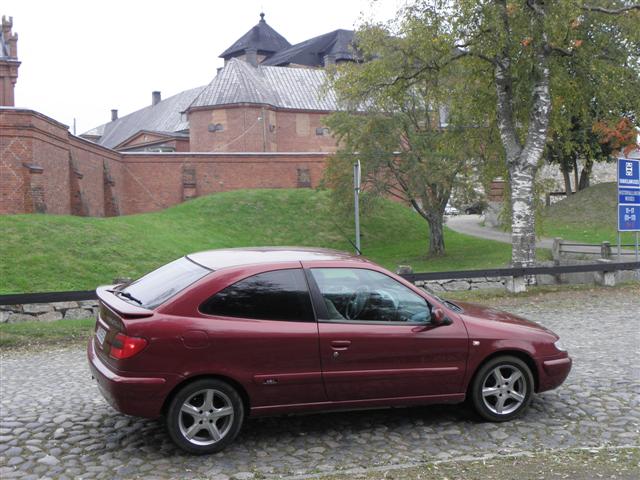 Vierähtipä hetkinen aikaa, mutta tänään kerkesin käydä Hämeenlinnassakin, linnan portin pielessä kuvaamassa CX:n  . Ei ihan samaan kohtaa osunut Xsaran kanssa, mutta samaksi paikaksi tunnistaa. Puutkin vaihtaneet jo värinsä  .