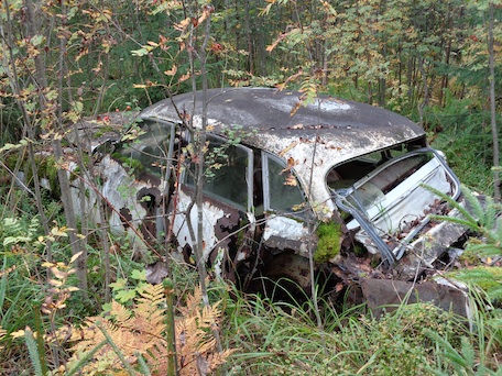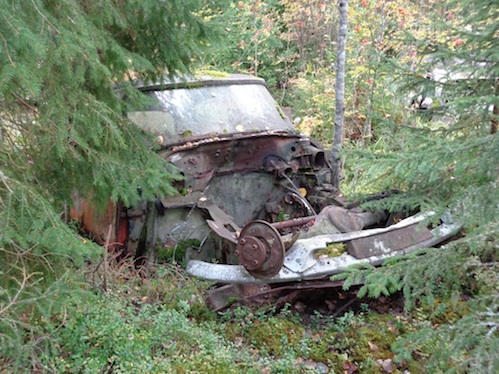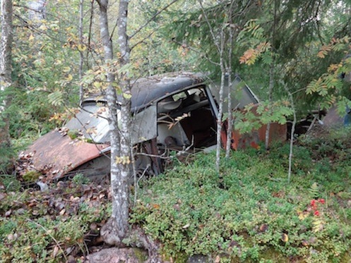 Näissä metsäautokuvissa törmää toisinaan ihan uskomattoman hienoihin kuviin. Muutenhan en kannata autojen raatojen jättämistä luonnon armoille.