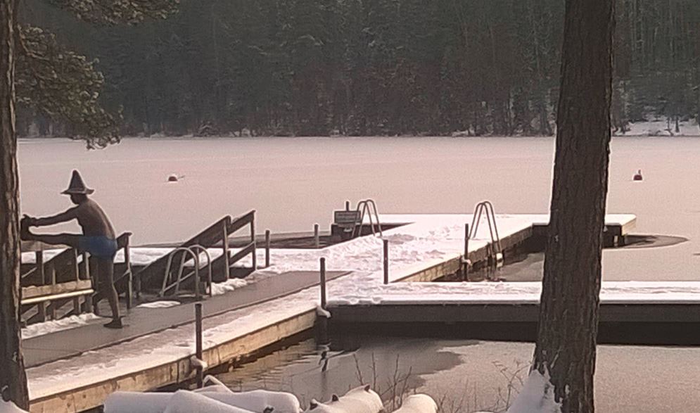 Itse aloitin tästä eli avantouinnista ja aion tehdä sitä mahdollisimman usein koska terveysvaikutus on hurja. Lisää mm ruskeita rasvoja (samoja kuin eskimoilla) ja auttaa tasan mahtavasti nivelkipuihin ja reumaan jota ei onneksi vielä ole. Oli hieno tuo eka kokeilu sillä paikalla oli Vantaan musta jääkarhu (kuvassa). Sälli veti 25 metrin uintilenkkejä nolla-asteisessa vedessä 5 min välein ja kävi välillä vain lämpimässä suihkussa. Itse uin ensimmäistä kertaa elämässäni nolla-asteisessa vedessä ja jäin heti koukkuun. Viiden metrin matka portailta toiselle oli todella helvettiä, täysin sanoin kuvaamatonta. Kipu vedestä noustessa oli harvinaisen kova. Olenhan masokisti... harmi vaan että siihen kuulemma tottuu