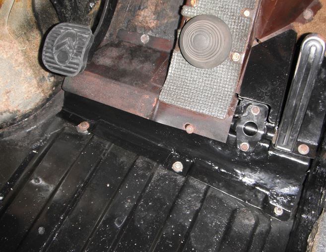 Tuollainen se sitten on lattian alla, kaksi venttiiliä joiden suhdetta määrätään takajousipaineella toimivan hydraulisylinterin avulla. Ralliautoista tuttu "Pedal-box", mutta tässä tapauksessa aktiivinen sellainen...