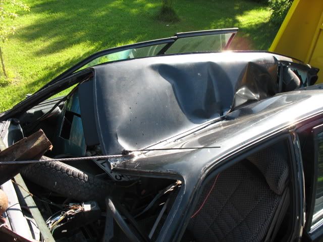Tässä on "vaijeriohjuri" CX sedanin katossa. Vinssi kun kiskoi valkoista CX:ää mustan päälle niin vaijeri kulki mustan CX:n katon kautta, tehokkaasti litistyi.