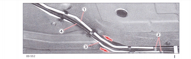 XM:n alustassa apukuskin kohdalla oleva polttonesteen syöttöputki on puristettu kasaan. Kuvassa siis tuo paksumpi, ohuempi on liitteenä olevan korjausoppaan kuvan mukaan paluuputki. Miksi noin on tehty aikoinaan? Auton edellinen omistaja ei ole tietoinen tuosta teosta. Auto on toiminut hänen käytössään normaalisti. Putki näyttää olevan täysin puristettu kasaan: puristustyökalun leukojen jäljet ovat näkyvissä (lukkopihdit). Täytyy siitä kuitenkin polttoaineen jossakin määrin päästä virtaamaan läpi.
