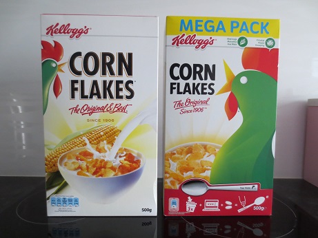 Suurin vedätys tuossa on ostaa ylipäätään Kelloggsin maissihiutaleita. Ai miten niin? Ostappa joskus jotain euroshopper/pirkka/joku muu halpamerkki -maissihiutaleita ja pistät samanlaisiin kippoihin molempia. Sen jälkeen pyydät jotakuta antamaan sokkona jompaa kumpaa hiutalekandidaattia ja maistamalla määrität kumpi on kumpaa. 1/5 kerroista saatat arvata oikein, mutta 4/5 osoittaa, ettei mitään eroa ole. Paitsi hinta ja erityisesti brändistä maksettu hinta.