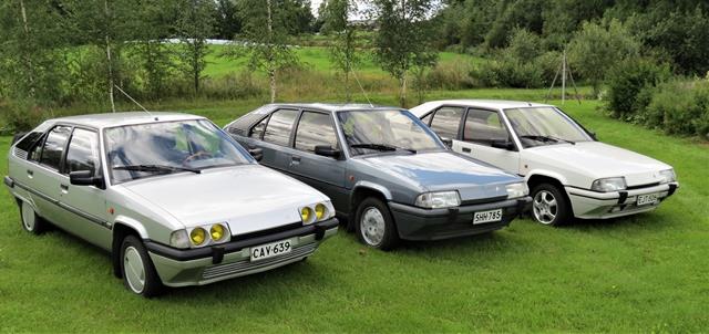 Citroen Bx 19 Millesime -92 aut., Bx 19 TZI farm -92. Vw K70L -72 museorek., mopedi Crescent Topper -67 museorek., Yamaha 80 Ygs-1 -71 museorek.
