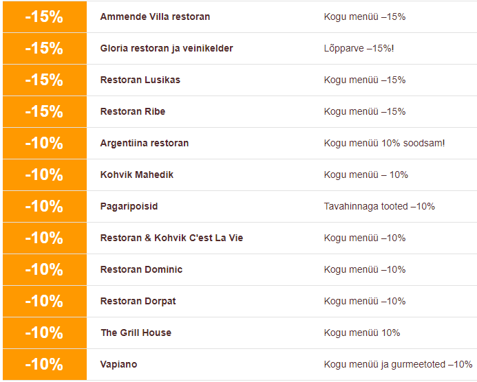 Ehkäpä ei, mutta kyllä siellä listalla on aivan tavallisia ravintoloita joissa ei edes ole valikoimaa, josta kerätä suurempaa katetta näiltä "rikkailta": https://www.swedbank.ee/private/home/im ... nerid=1908Liitteet: