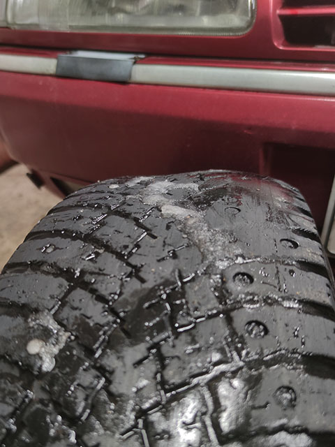 laakeri kirjoitti: Olisi aika huimaa noin pitkään samoilla ajaa. Mie olen aina 2-3 vuoden välein joutunut renkaat uusimaan. Kesärenkaat ovat siinä vaiheessa slicksit ja talvirenkaista pito loppu. 2-3 vuosikymmenen, tarkoitit ilmeisesti? Itse jouduin valitettavasti hylkäämään Xantian alkuperäiset Hakkapeliitta ykköset, kun kulutuspintaan ilmestyi joku outo patti viime tammikuussa. Yritin kyllä aluksi siirtää tuon kulmikkaaksi muuttuneen taakse, mutta jumputuksen huomasi sieltäkin. Rapiat 360tkm ja 23 vuotta kestivät, ihan kohtuullinen suoritus mielestäni. Vaikka olivathan nuo viime metreillään jo harmaalla alueella jos urasyvyyttä katsoo. Nastaero oli sentään pyöreä nolla.