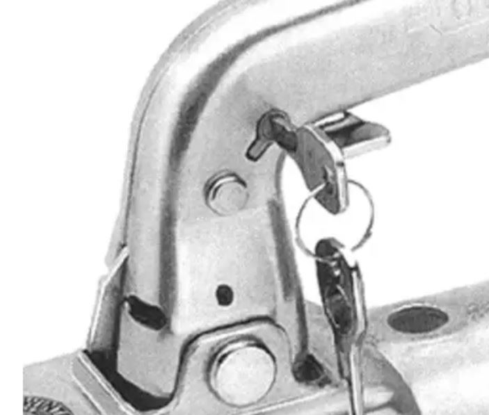 Ilm. tälläinen osa Tuo tosiaan on perävaunun kuulakytkimen lukko, mutta esim. tuossa ex. Nissan QQ oli irroitettava koukku ja siinä oli myöskin tuollainen samanlainen lukko |