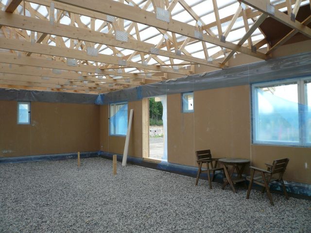 No onhan toi sentään "sateelta suojassa" vaikkakin vain pelkän aluskatteen varassa mutta kuitenkin Meillä oli "hiukka" helpompi setti, tässä vimonen moduli asettuu sokkelin päälle kuva