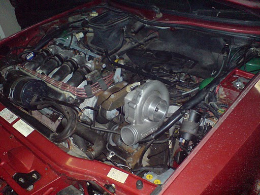 kaippa tuossa tosiaan ideana on, että vesipumpulta / hihnapyöriltä otettaisiin voima pakokaasu-ahtimen puolikkaalle, siinä on vaan (ilman lisä-välityksiä) senverran vähän kierroksia, ettei normi pakokaasu-ahtimen puolikas saa tehtyä oikein mitään....