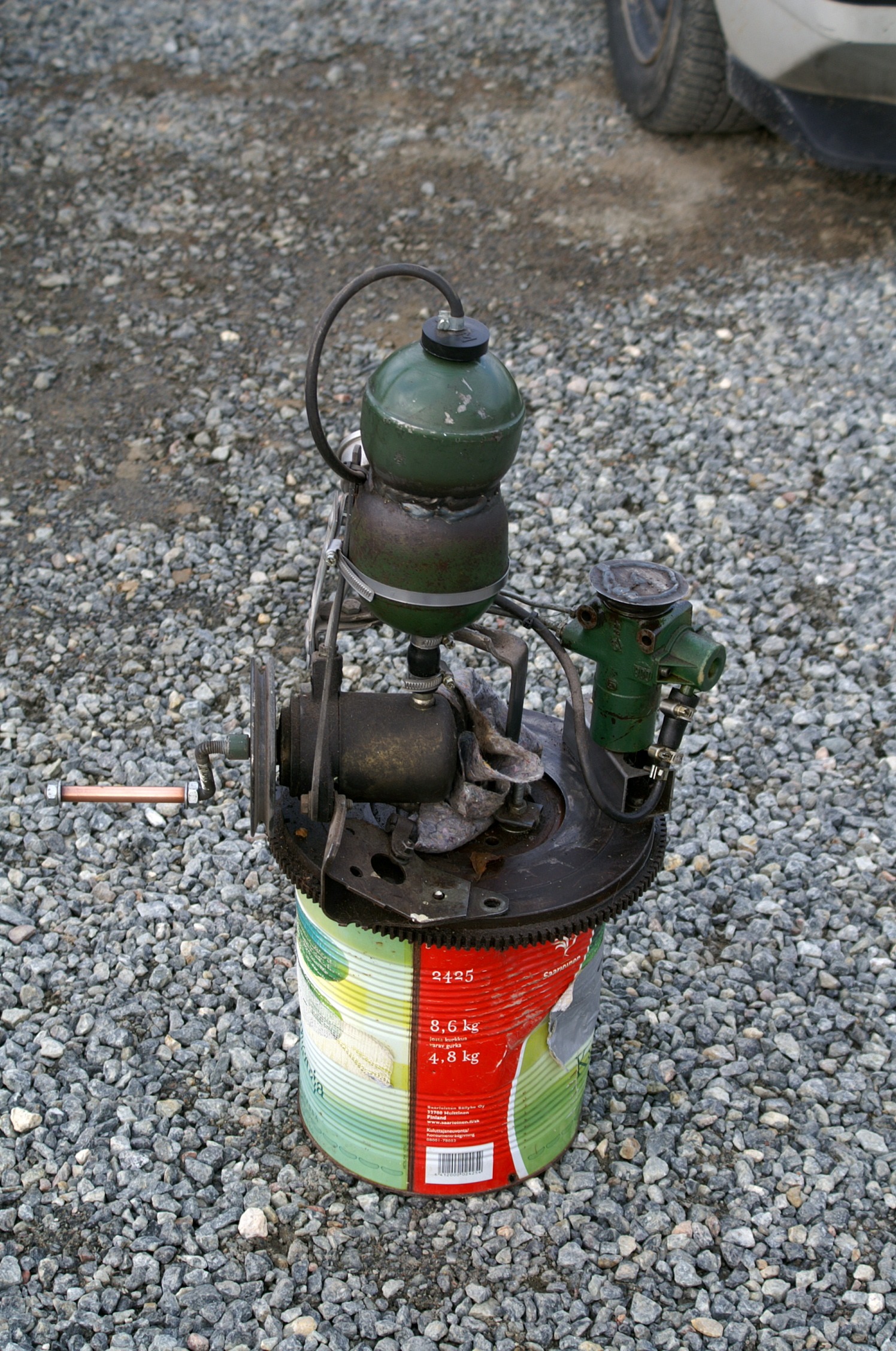 Tuossa kuva takapuolelta mun tekemästä versiosta. Paineenvapautusruuviin on hitsattu lattarauta poikittain käyttöä helpottamaan, paineenvaraaja on ohjastehostimettomasta beksistä koska siinä on vain yksi lähtö. Painemittarille menevään beksin orkkisputkeen on juotettu helmi jotta liitännästä saatiin tiivis.