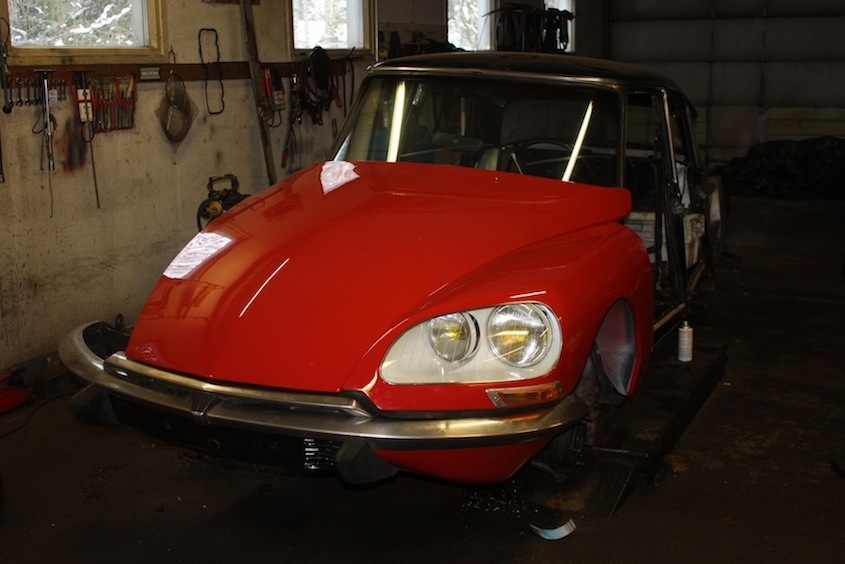 Talvi ehtii alta ennenkuin talvi-DS nousee pyörilleen, mutta onneksi toisia talvia tulee aikanaan. Nyt toimii jo elektro-hydraulinen 5-lovinen vaihteisto, moottori samoin. Hienonväriset (AC424) pellit tulivat maalaamosta ja alkavat ripustautua paikoilleen. Törkeenhieno, tuollainen valkoisten hankien keskellä!