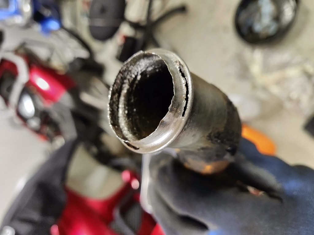 Jaahas, turbo ja pakosarja kiinni, nokat, ja kone on nyt ajoitettu ja tällä hetkellä laitetaan letkuja ja polttoaineen syöttyä kiinni. Paska tapaus on tuo takana oleva metallinen vesiputki, joka liittyy termarikoteloon O-renkaalla. Paikka on sama, mistä alunperinkin lähtivät vedet vuotamaan ulos, todennäköisesti aiheuttaen kannentiivisteen vuotamisen. O-rengasta ei tahdo saada menemään nätisti millään. Noh, koska putki oli vaan yhdellä pultilla ja letkuklemmarilla irti ja putken huuli oli jo valmiiksi moukaroitunut, niin otin lopulta koko paskan irti, kun ajattelin että siistitään putken pää ja huuli, jotta tiiviste pysyy kunnolla, ja sitten nitkutetaan se tiivisteen kanssa kiinni tuohon termarikoteloon kätevästi irrallaan. Taisi löytyä syy, miksi vedet karkasivat tuosta liitoksesta aikoinaan: Liitteet: