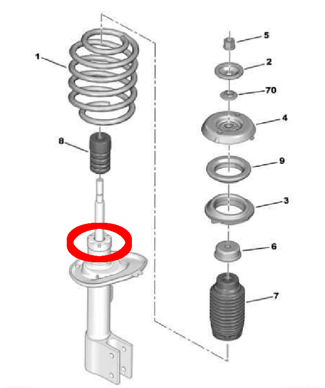 Toinen holkki oli vielä saanut hittiä jossain vaiheessa, eikä sille tuntunut löytyvän paikkaa, joten kasasin uuden iskaritolpan räjäytyskuvan mukaan ja otin toisen puolen työn alle. Noh, eikös vaan siltä puolelta löytynytkin vain yksi muoviholkki, niin kuin pitikin löytyä! Onkohan tässä käynyt niin, että Pierre ja Edouard ovat taas kasailleet sitikoita viinikrapulapäissään ja satunnaisiin iskaritolppiin on hujahtanut kaksi holkkia... Ensimmäinen auto muuten, missä olen saanut kaikki koiranluiden, raidetankojen ja iskarien mutterit irti ilman rälläkkää tai dremeliä tai mutterinmurskainta. Nivelien tappien ja iskaritangon päässä on yleensä hex- tai torx-kolo ja sitten silmukka-avaimella voi pyörittää mutteria auki. Yleensä hex/torx nuljahtaa ja sen jälkeen tanko pyörii tyhjää. DS:ssä aukes silleen niin kuin pitikin. Näkee myös, että suunnittelussa on jo huomioitu, ettei esim. iskaritolpan pään mutteri lillu vedessä ja ruostu paikalleen. Jopa vedenpoisto on ohjattu erillisellä muovikaukalolla pois iskaritolpan yläpäästä.
