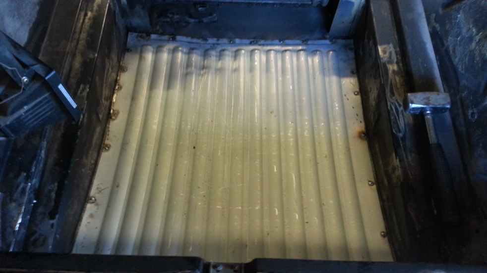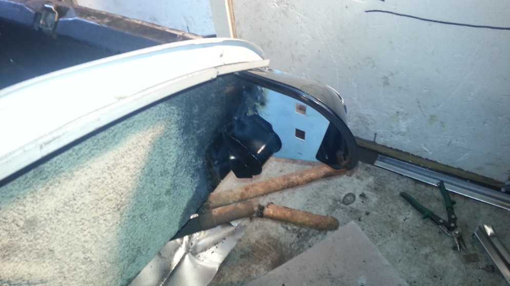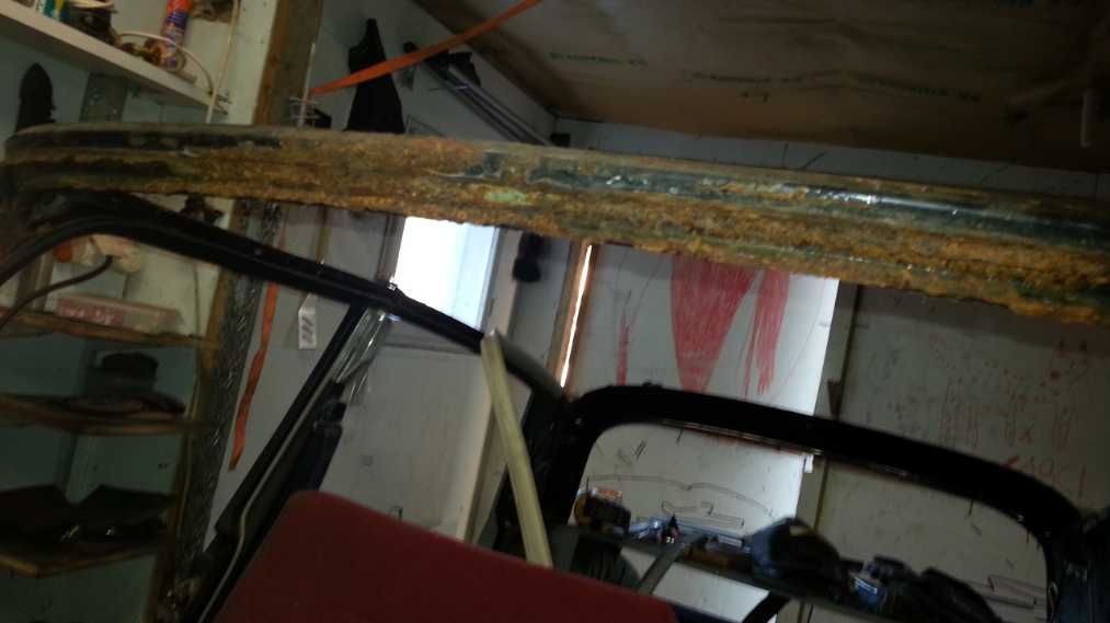 Tää menee nyt ihan kirjotteluks, näköjään. Sain erittäin mukavan puhelun hetki sitten, nyt mulla on takakontin lattia, nyt on kaikki peltiosat kassassa, sain tohon tuulilasin yläpalankin hommattua, eli hitsikone savuamaan Otin vielä pari kuvaa, miten hyvin ruoste irtoaa soodalla. Kyllä sillä saa kelpoakin jälkeä aikaan. Nyt tämän jälkeen keskityn taas tekemiseen ja postailen kun on jotain järkevää uutista....