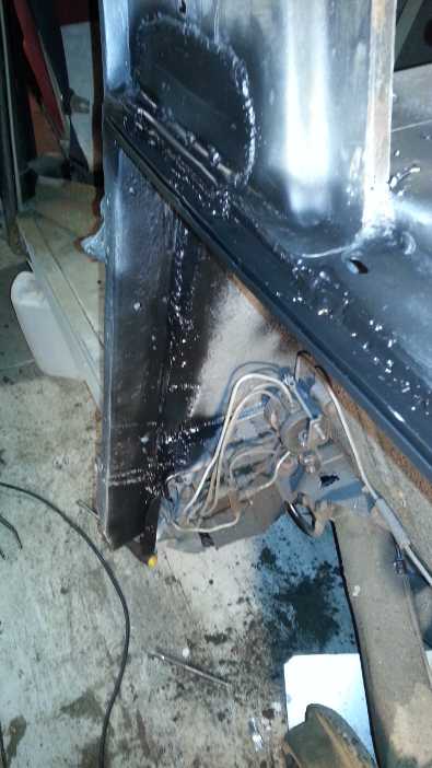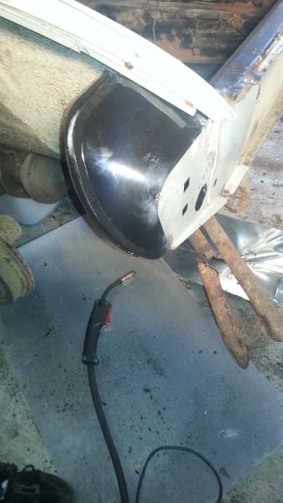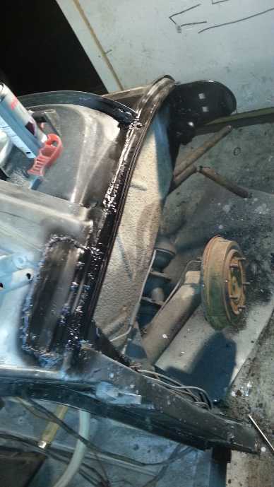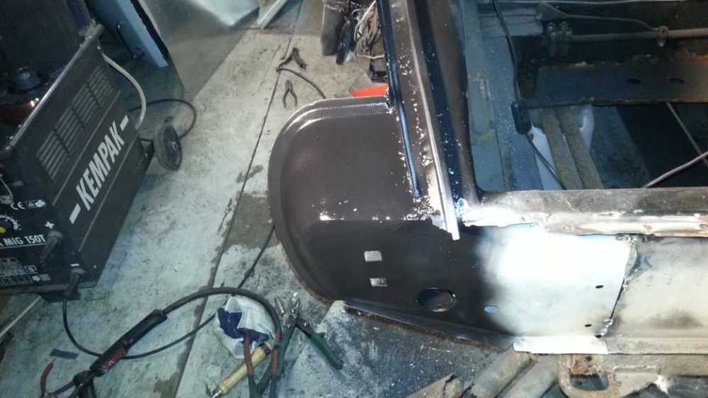 Tää olis nyt tässä vaiheessa.... Takalaita ummessa, sekä tavaratilan lattia ja onnistuin suihkaan sitä ZN pohjamaaliakin stragesiin kohtiin. Ruostesuojausta olen hoitanut kolmella tapaa ulos jääviin pintoihin ja kahdella tapaa sisäpuolisiin. Ensin joka hitsauspaikka putsataan ja pestään. Sinkkimaalia ensin, sen jälkeen kivenisku aine, siis sitä ruiskutettavaa ja näitten päälle Dinitrol. Hitsauksissa olen pyrkinyt poistamaan ruosteet leikkaamalla mädät pois ja limittämällä max. 1-1,5 cm, näin vältetään turhien ruostetaskujen syntyminen, eli peltien väliin jäävä hitsaamaton kohta on mahdollisimman pieni. Sisäpuolelle laitan sinkkimaalin ja kiveniskumassan ainakin takakonttiin. Muualle tulee luultavasti pohjille super rostex ja sen päälle mustaa hieman kovempaa väriä. Näin ruostesuojaus on hallussa.