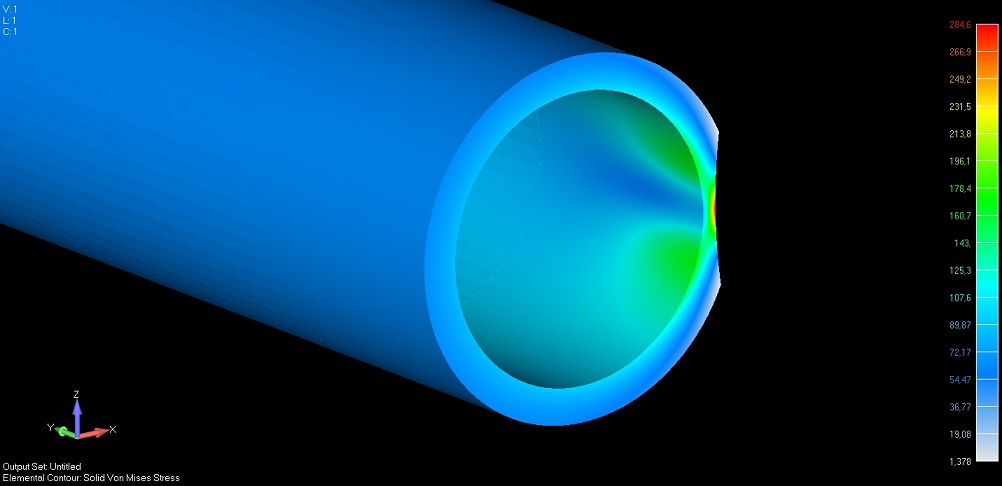 Joo, varmaan aika lähellä totuutta tuo! Matsku on ehkä hieman kovemman tuntuista kuin vakio hydeputki joka jotain 37:kaa. Kuorma on väsyttävää vetoa tuossa, tuskin väsymiskestävyys paljoa yli tuon tuloksesi on kaikkine pintavirheineen? Lisäksi tärisevän putken taivutukset jännityksiin jne.., -eli korkea aika on uusia!