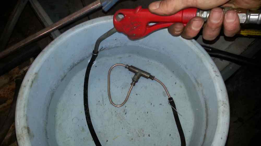 Pätkä letkua väliin, kolmihaara lillumaan ja pistoolin kahva pohjaan, tulos: Ei vuoda, eli tämän testin perusteella meni homma täysin nappiin.