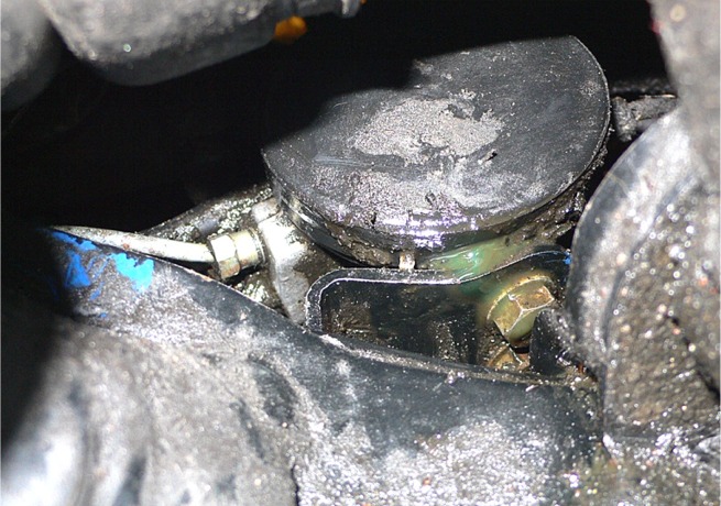 Yritin pitkällä ruuvarilla ja räteillä hieman puhdista tuota öjyisestä moskasta, että näkisikin jotain. Tarkastin nuo paluuletkut ja tuo näytti siltä että siinä olisi kaksi paluuletkua ja niistä toinen klemmarilla kiinni, molemmat kuitenkaan eivät vuoda. Auto molemmista päistään pukeilla, mutta käytin sitä sekä korkeudensäädintä edestakasin muutaman kerran, sekä hallitunkilla nostin toista pyörää. Sammutin koneen ja tutkin uudelleen miltä nyt näyttäisi, että ainoa paikka mihin lähmää tuli on tuon päädyn kuminreunaan alas ja otin siitä kuvankin. Millä miten tuo on helpoiten irroitettavissa . Itse arvelin että jakolaatikosta öljyt pois sekä vetoakseli pois ja moottorin kiinniys etukelkasta ja lootan kyljestä näin saisi ainakin ”ehkä” tarpeeksi tilaa työkaluille.