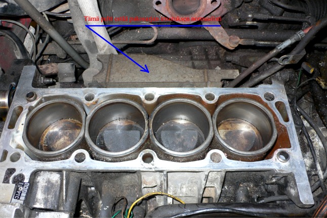 Pitäisi alkaa purkamaan tuota risaa irti, mutta on niin pirun pahassa paikassa ettei alempia pultteja edes näy ja ylemmät ainakin on todella paksussa ruosteessa. Ihme jos ehjänä saa nuo mutterit irti ja jos pinnapultti katkeaa niin edessä todennäköisesti melkoinen purku-urakka että saa kannen pois noiden pakosarjan pulttien takia. En tiedä pitäisikö suosiolla aloittaa tuo purkuhomma ja ottaa kansi irti pakosarjoineen. Jos jollain on parempia ehdotuksia, tuon tekemiseen niin otan hyvillä mielin vastaan ohjeita.