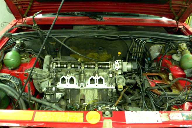 Kansi ensin työn alle. Venttiili välykset suhteellisen isot imuissa n.0.35 ja pakojen n.50mm, joten palojen vaihtorumba edessä. Samalla pieni venttiilien hionta ja kumien vaihdot uusiin tietenkin. Niin tätäkään konetta tuskin tarvitsee avata uudelleen. Uusi käytetty pakosarja pitäisi tulla ensi viikolla, jotta pääsee kasaamaan koneen uusine tiivisteineen ja hihnoineen vaikka jakopää on laitettu varmaan lähivuosina osien kunnoista päätellen, mutta tuota ei ollut merkattu huoltokirjaan ja edellinen merkattu jakopään remppa on 16.10.-01 km 124790. Nyt on mittarissa 197110km.