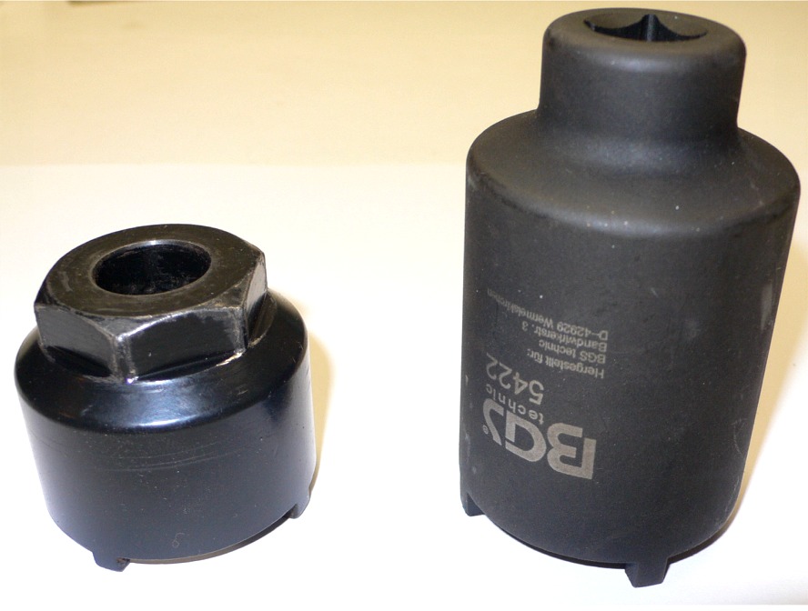 Näillä alapallonivel hylsyillä testasin noiden irrottamista. Tuo korkeampi ei käy minun mielestä kuin puolentuuman pulttipyssyn kanssa . Tuo matalampi on todella hyvä kun sen saa kiinnitettyä niveleen mutterilla hyvin kiinni niin ei heilu itse nivelessä yhtään ja väänsin 35mm hylsyllä ja ¾” T-kahvalla mihin lisäsin metrin putken tuin alta vielä hallitunkilla ja ihan vääntämällä ja vähän nytkyttämällä irtosi vasen ihan helposti ja oikeanpuoleisessa sai kyllä käyttää koko kropan voimat (mitä nyt tästä pätkästä lähtee). Tuo on mielestäni hyvä oivallus että voi käyttää mutteria apuna niin ei pääse itse hylsy lipsumaan.