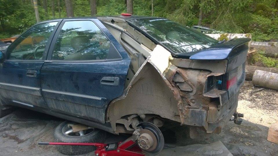 - Vasen takakylki kupruilla, tarvitsisi korjauspeltiä jostain luovuttajaraadosta + armotonta hitsausta.